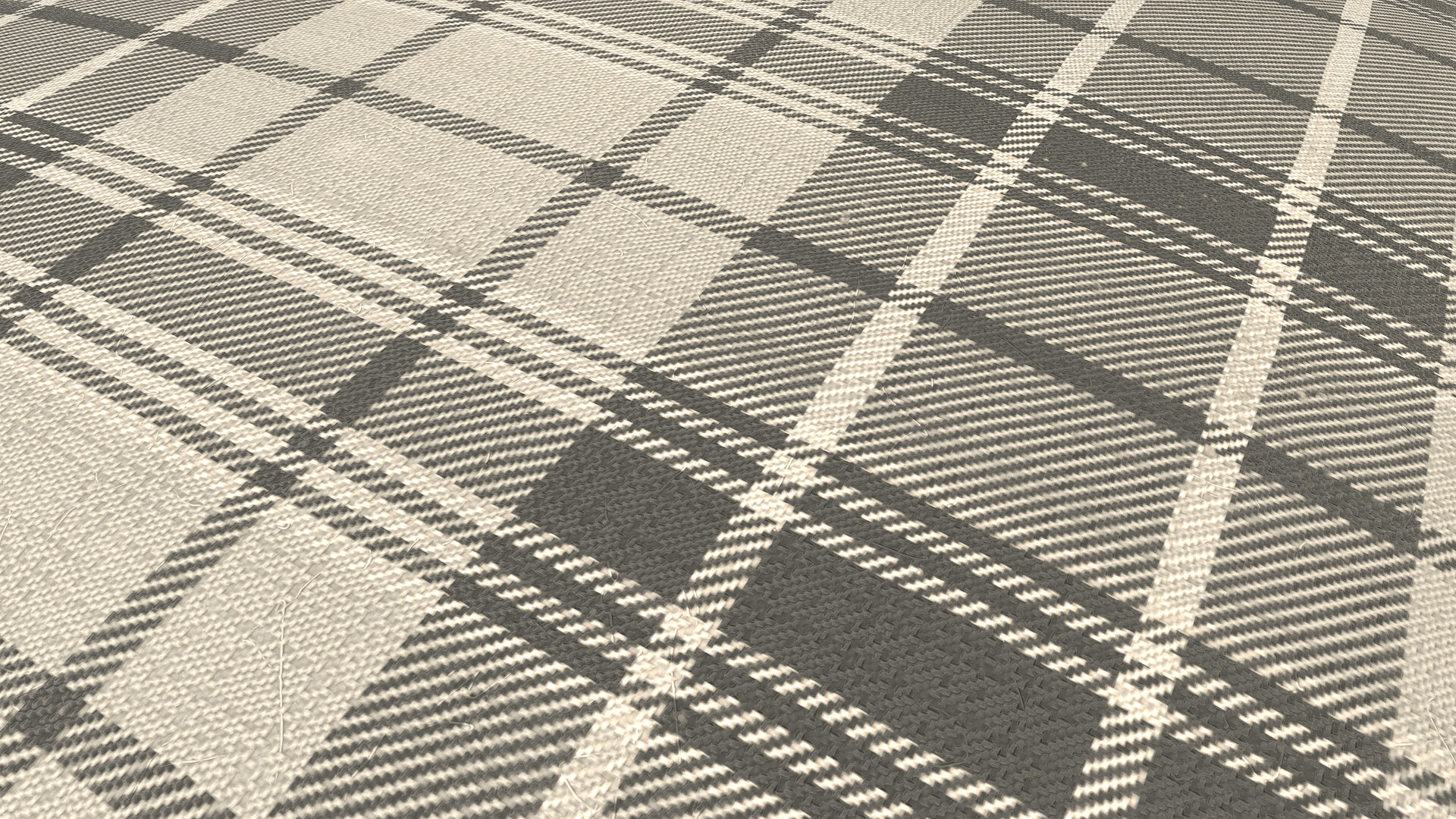 Plaid fabric for a throw pillow for a dining set I've made. After being unable to find the right look from plaid patterns online, I decided to use Substance Designer to get the look I wanted. The plaid was pretty simple to make, I made the weft and warp patterns in Photoshop and then masked them together with pixelated diagonal stripes. From there the rest of the texture was created procedurally, adding warp and surface details to make it feel more realistic.